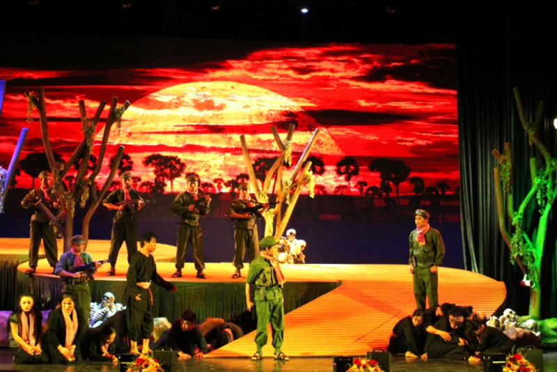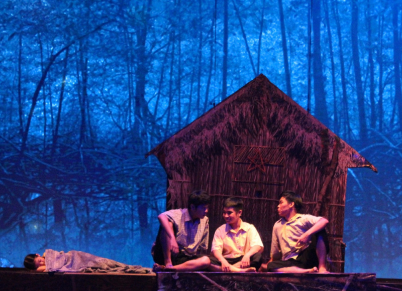 Vở cải lương “Bên dòng Long Khốt” để lại nhiều cảm xúc khi kết hợp hài hòa giữa màn hình led với ánh sáng, cảnh trí.